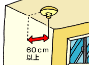 警報器の中心を壁から60cm以上離して設置します。