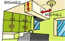 火災警報器の中心をはりから60cm以上離して設置します