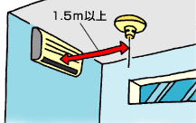 換気扇やエアコンなどの吹き出し口がある場合は、吹き出し口から1.5m以上離して設置します。