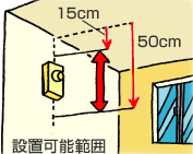 (熱を感知するものも15cm~50cm以内の位置に設置します。)